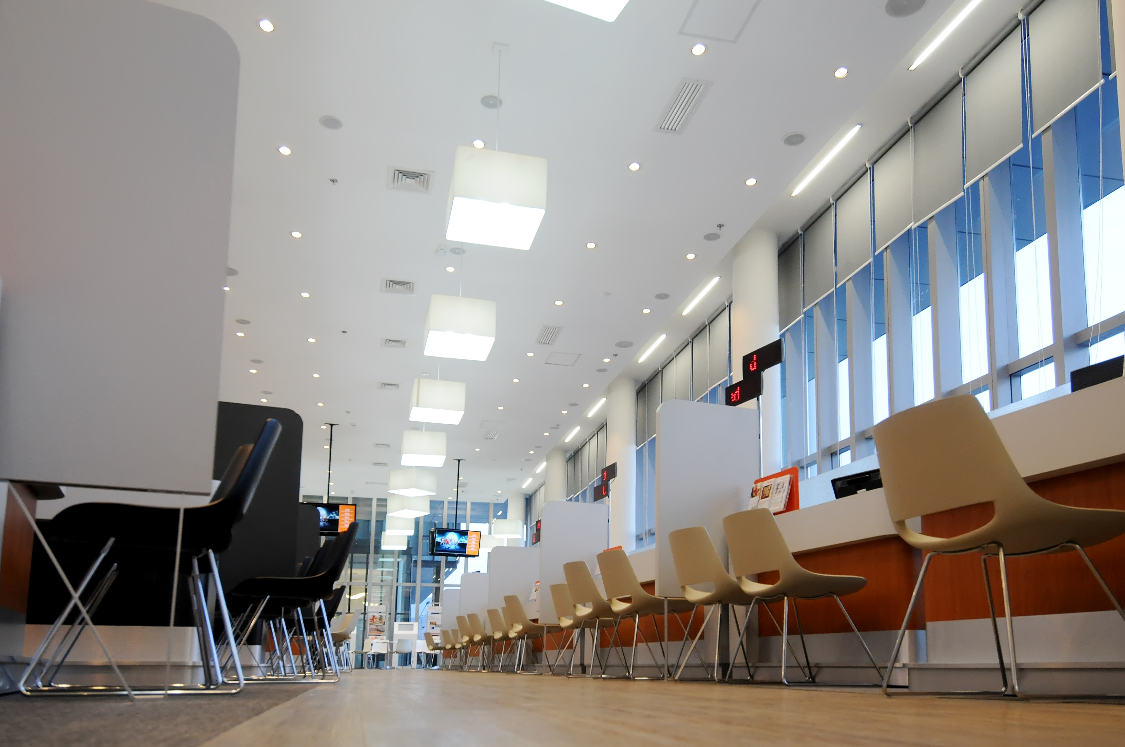 ლაითსტუდიომ შეიმუშავა განათების გაანგარიშებები და მიაწოდა სანათები საბანკო ზონების შიდა სივრცეებისთვის.