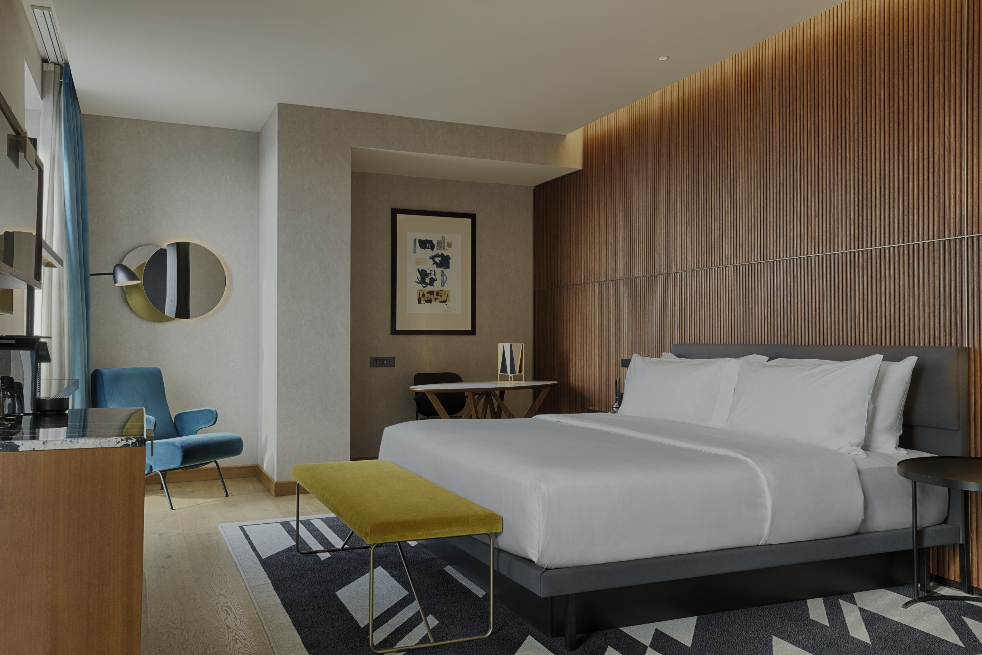 Le Méridien Batumi blends classical elegance with modern design, creating a stylish atmosphere across its public areas, rooms, and wellness facilities. From the welcoming entrance to the spa and gym, each space reflects a careful balance of comfort and sophistication.