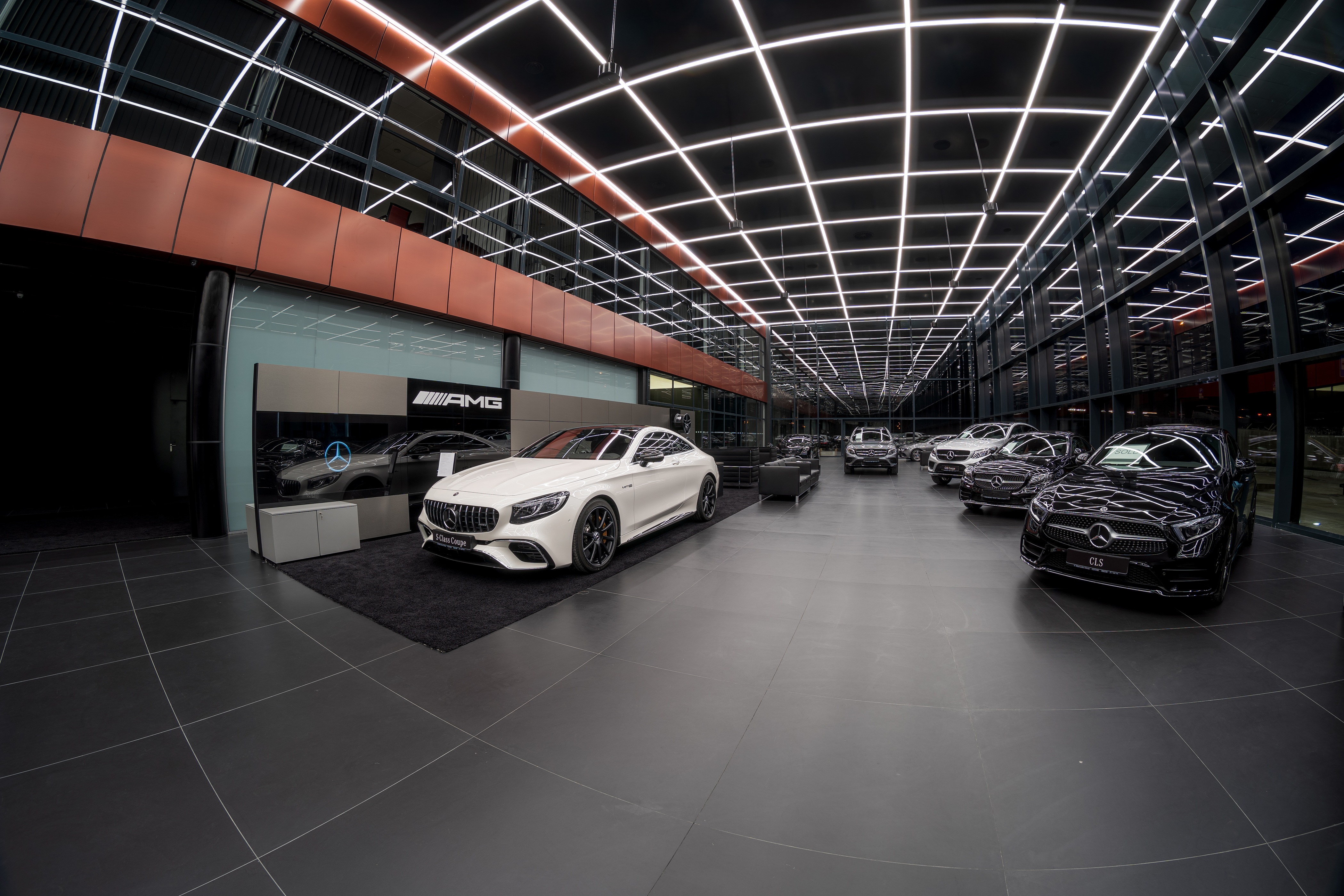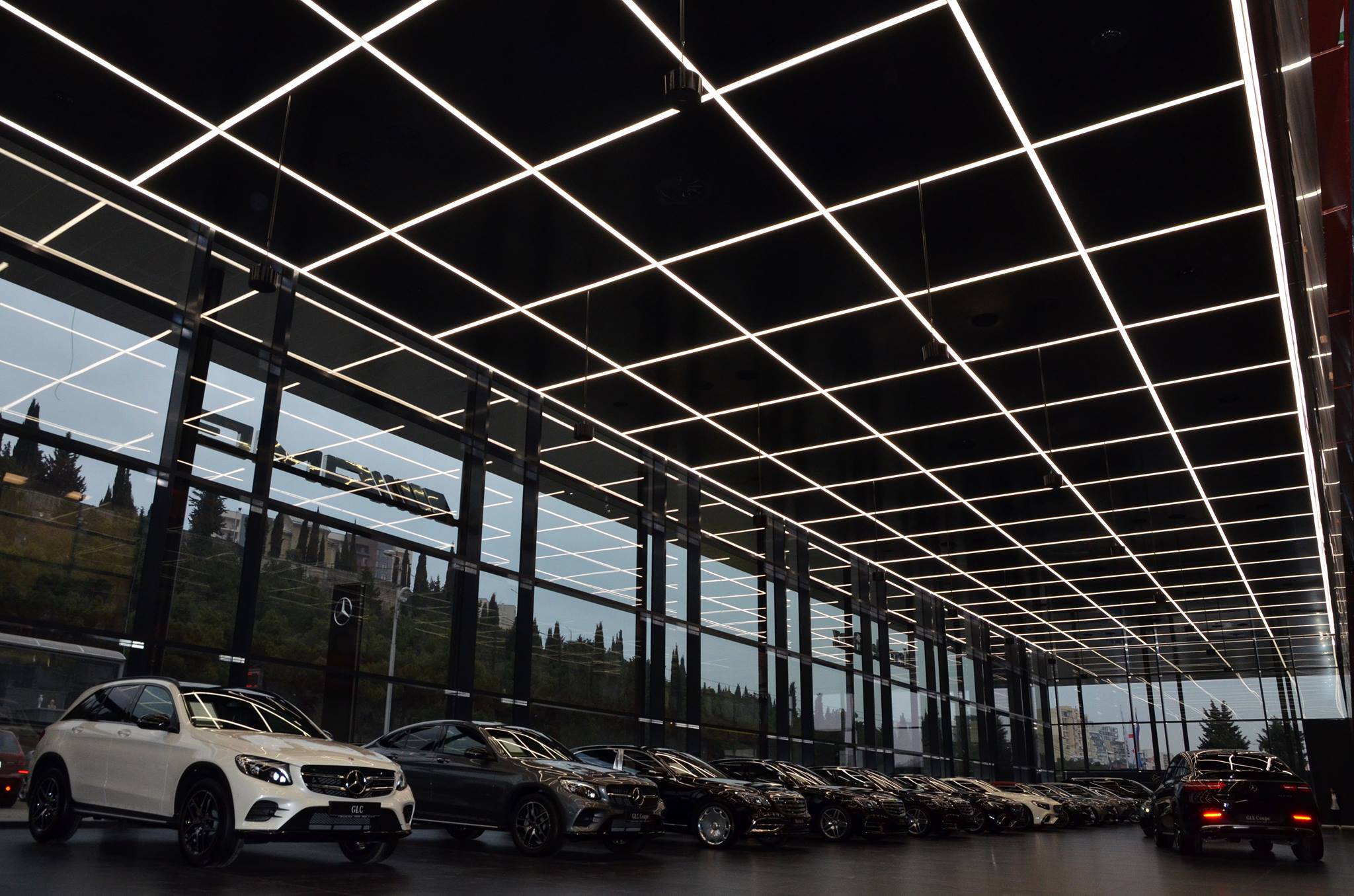 Within the scope of the project, Lightstudio developed the lighting concept based on the designers’ sketches and overall design vision. The lighting solution was carefully integrated into both showroom and office areas using recessed linear luminaires arranged according to an intersecting layout, emphasizing the geometry and architectural form of the façade.