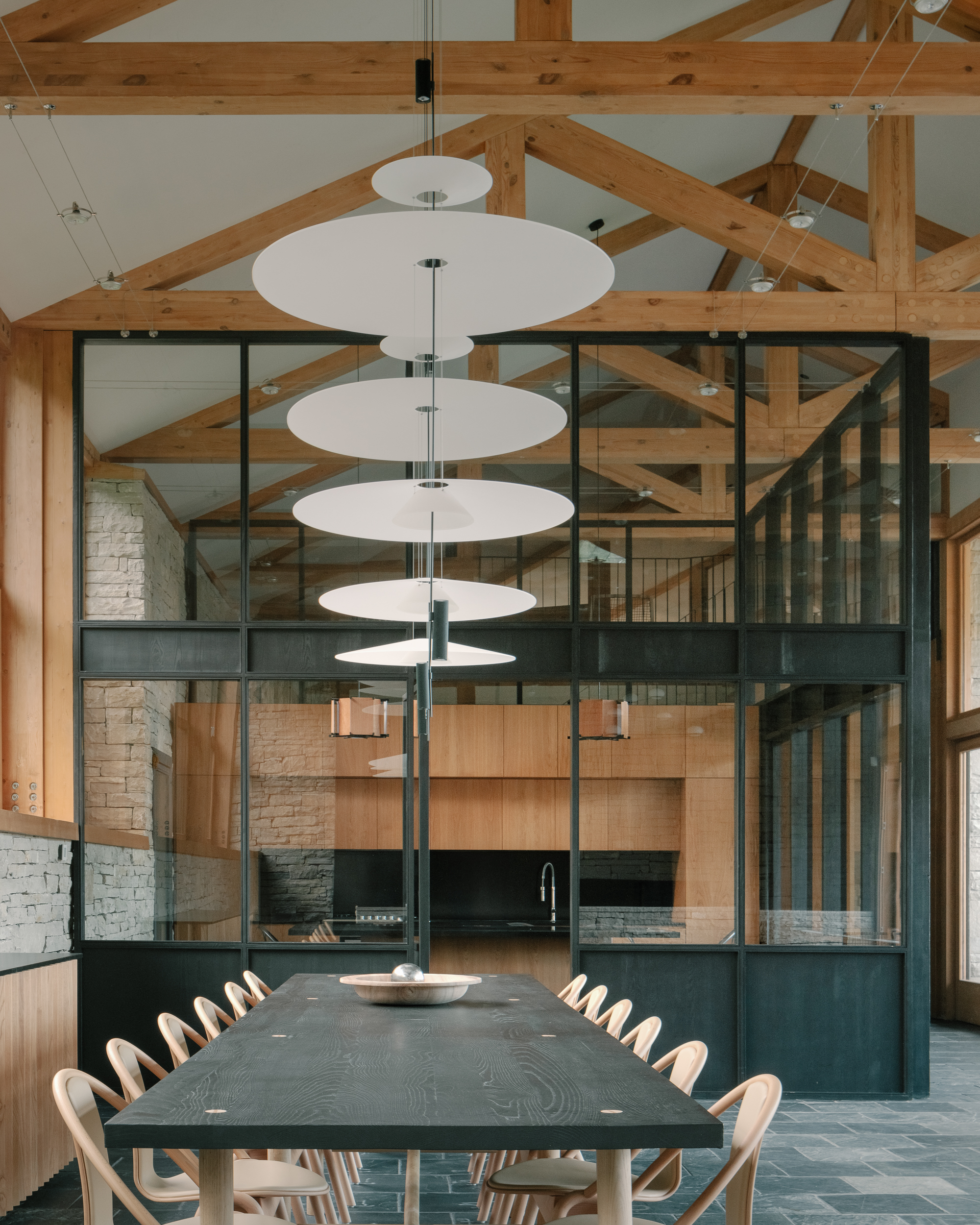 In the interior, discretely integrated wired systems deliver lighting with character and precision–adding atmosphere without visual weight, and leaving space for decorative fixtures to take center stage. Warm ambient layers and focused accent highlight architectural details and materials, shaping comfortable living environment.